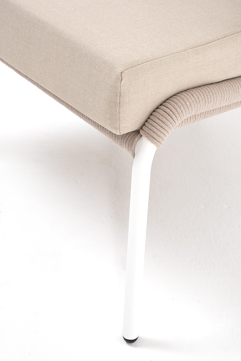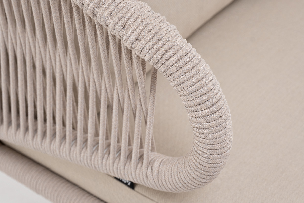 "Милан" кресло плетеное из роупа, каркас алюминий белый муар, роуп бежевый круглый, ткань бежевая 035