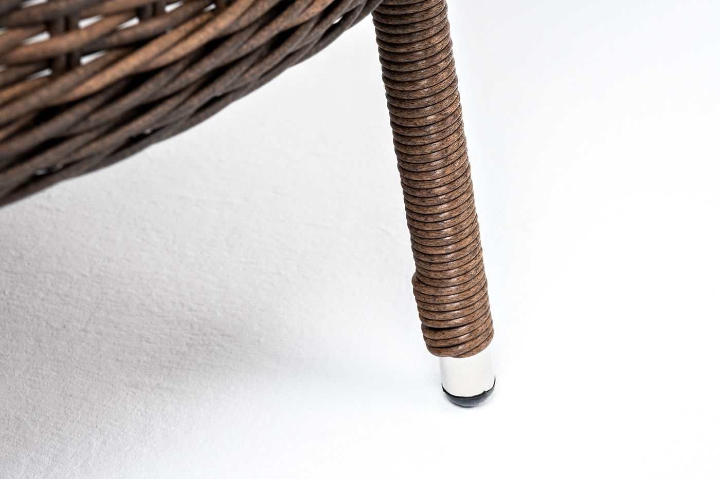 Каркас выполнен из высококачественного алюминия, который оплетен круглым искусственным ротангом коричневого цвета.