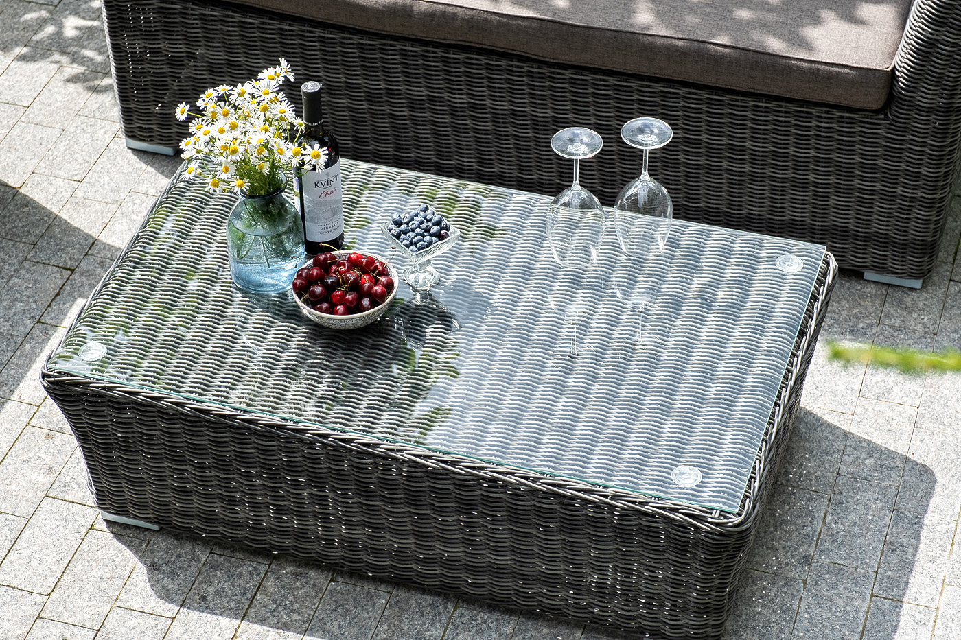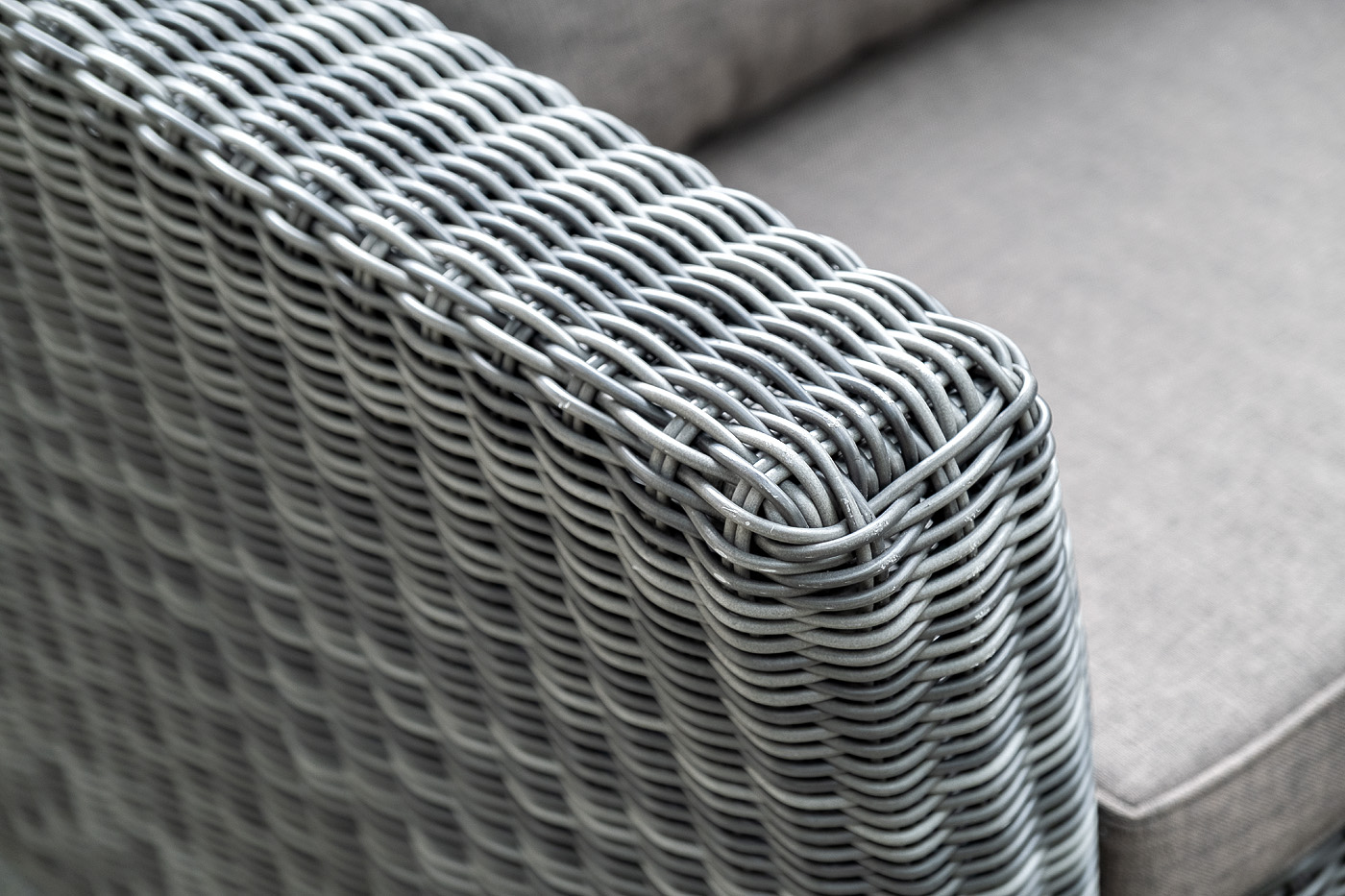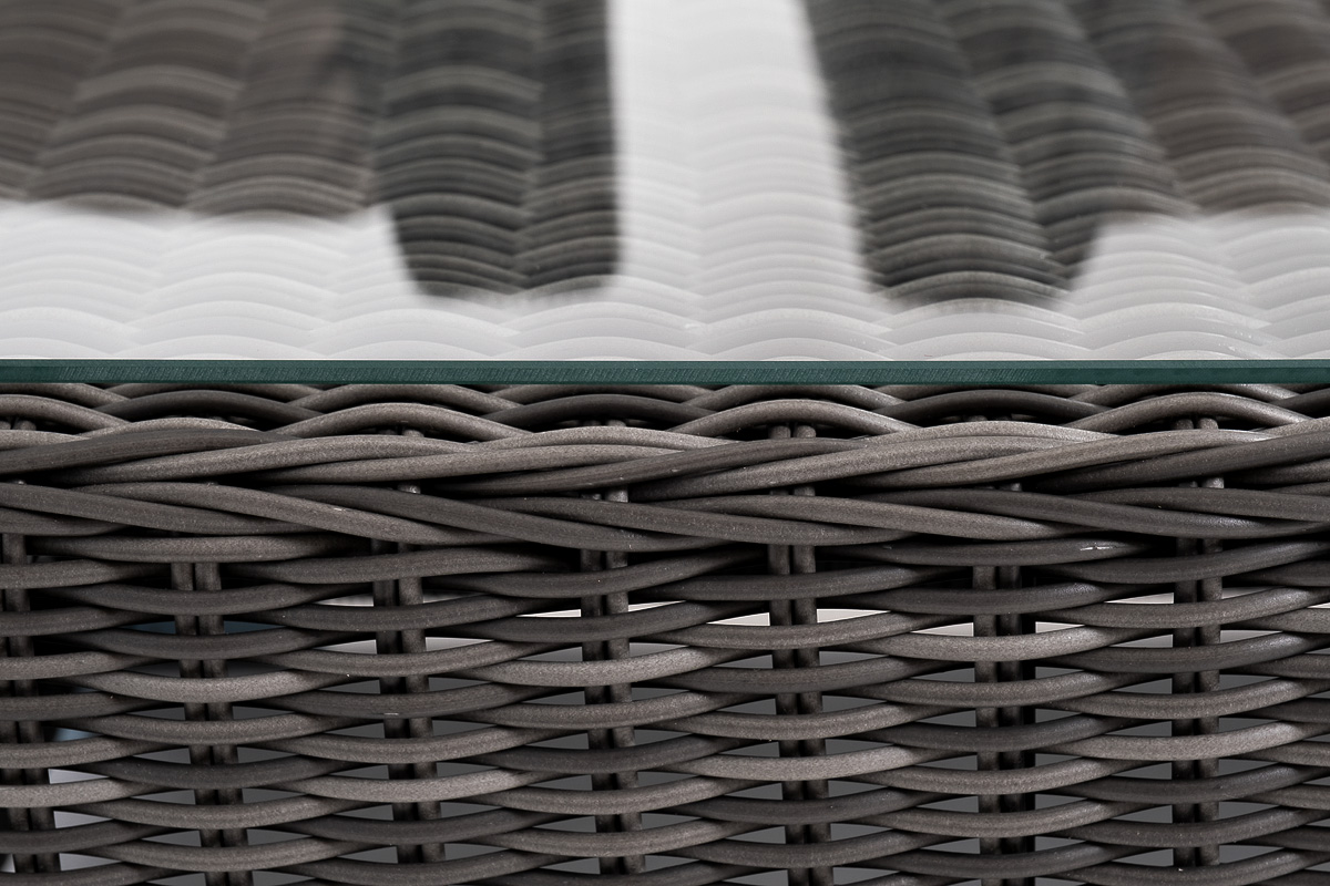 Из алюминия сделан устойчивый каркас мебели. Ее поверхность дополнена искусственным ротангом, из которого сделано ручное плетение, цвет "графит".