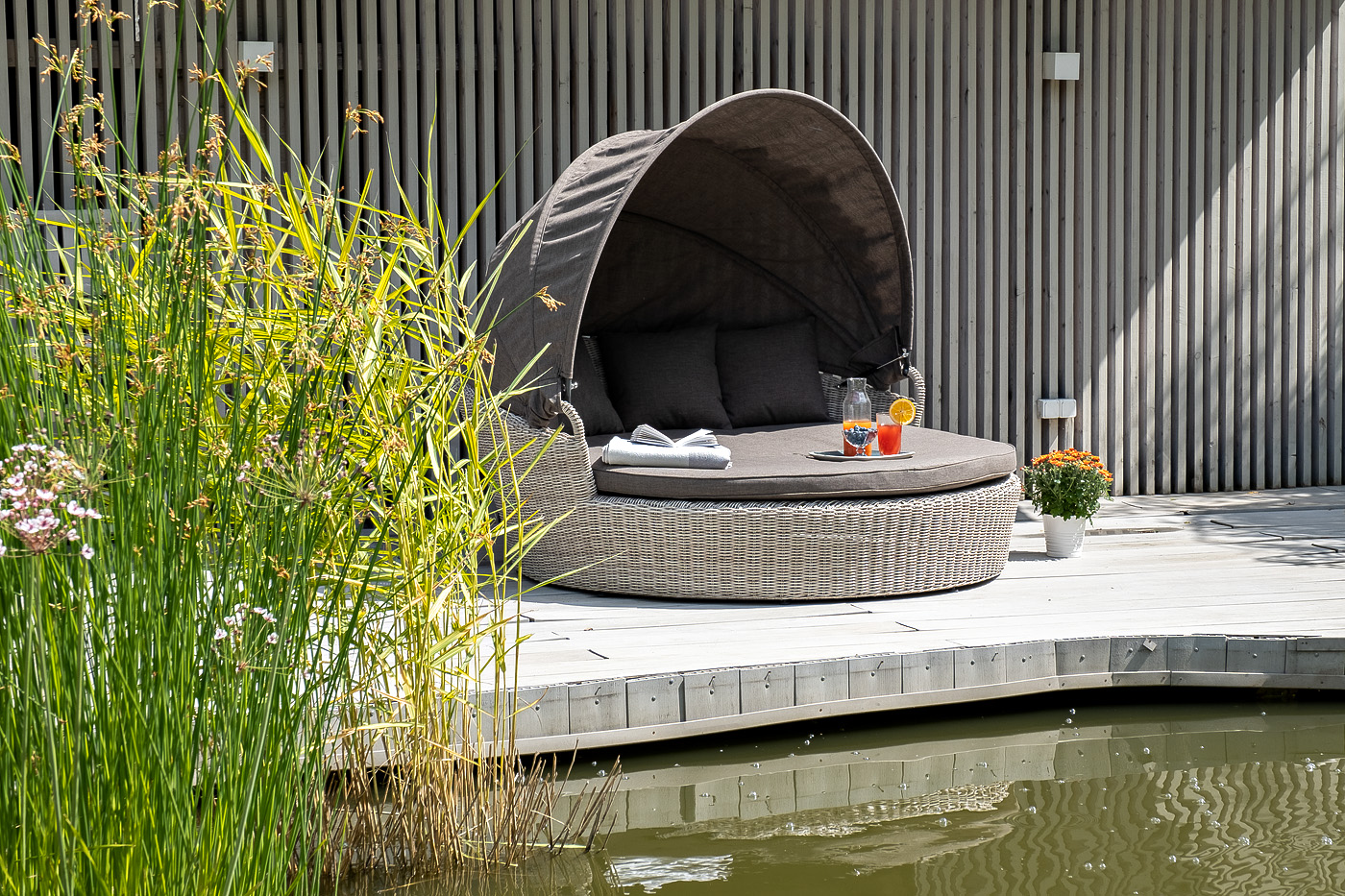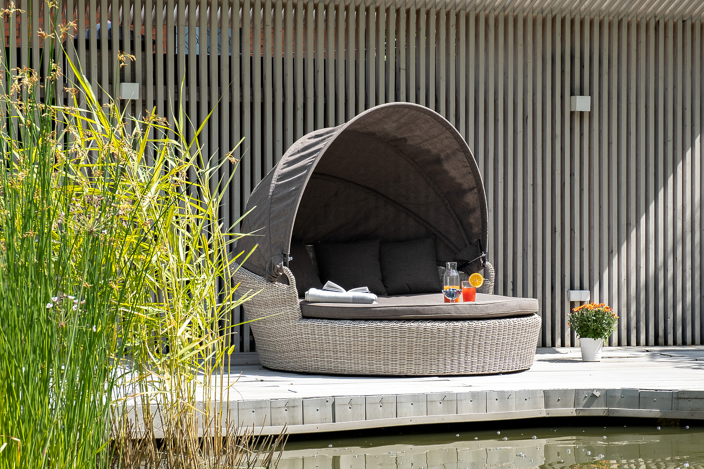 Круглая кровать из искусственного ротанга бежевого цвета «Стильяно» никого не оставит равнодушным благодаря своему неординарному дизайну.