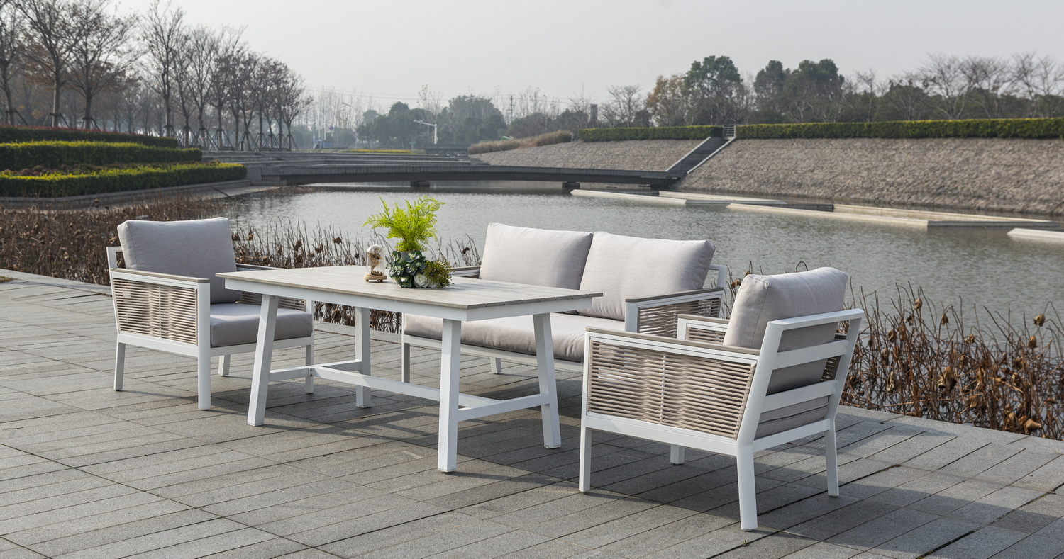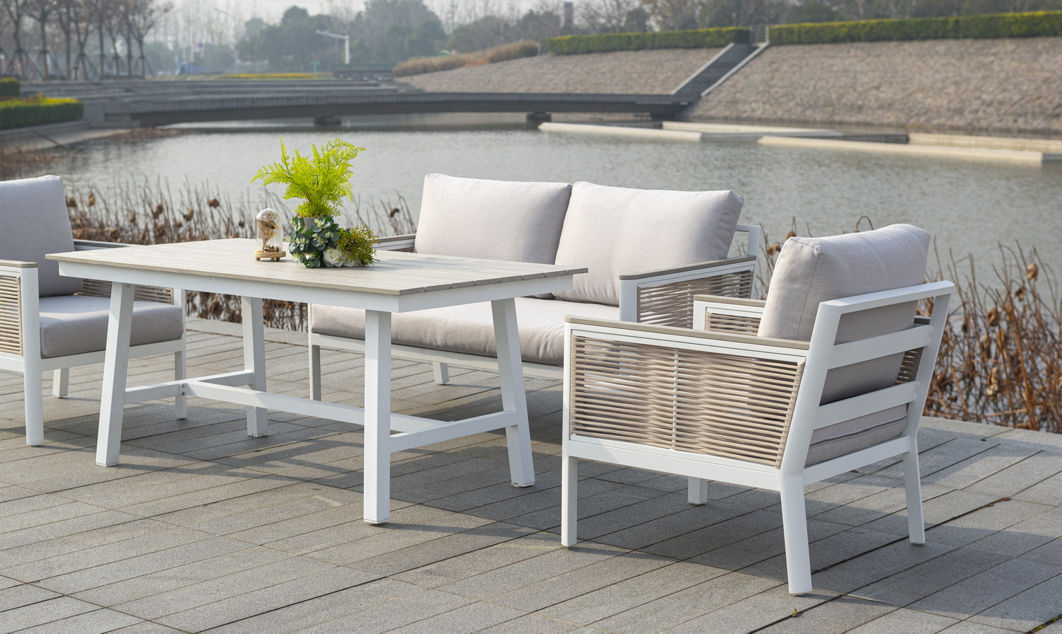 "Сан Ремо" стол обеденный из ДПК, каркас алюминиевый